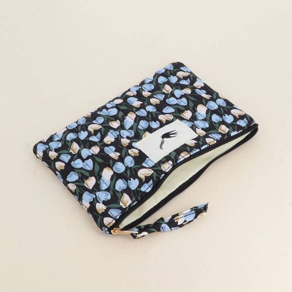 Trousse côtelée - Colombe de la Paix, motifs fleuris imprimés Noir
